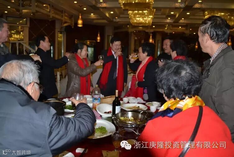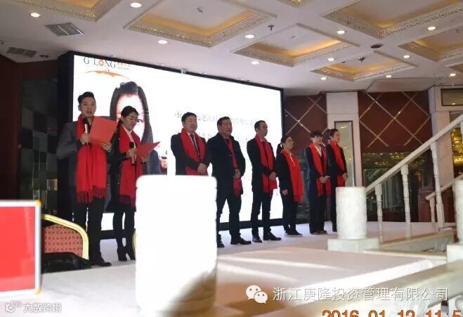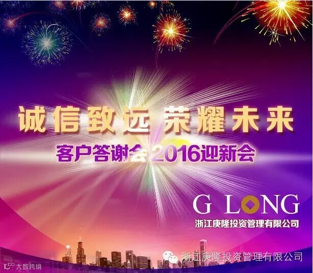 2016年1月12日浙江庚隆投资管理有限公司举办的2015VIP客户答谢会及2016迎新会在杭州藏鲜工坊大酒店隆重举行,政府相关领导及嘉宾共同出席了此次活动,活动于上午11点18分正式开始。由行政人员的一曲《小苹果》拉开了会议序幕,公司奖出了猴年纯黄金金币,猴年纯白银银币等礼品,全场充满了开心、欢乐、温馨的气氛,在集体管理人员一首《明天会更好》的歌声中于13点18分圆满结束。