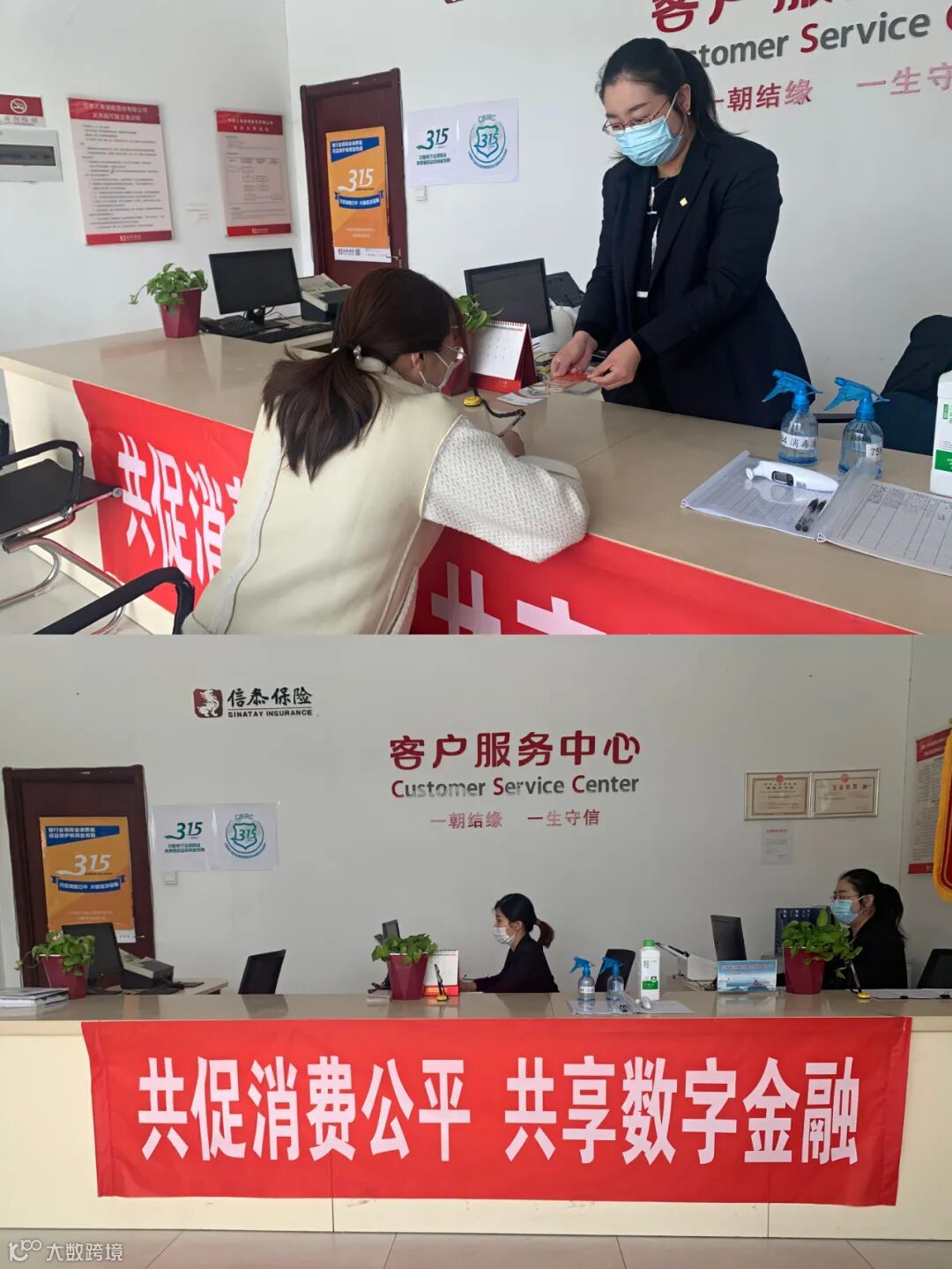 信泰保险滨州中支通过在客服大厅悬挂“共促消费公平,共享数字金融”条幅、张贴“3.15的主题海报”向客户宣传消费者权益的重要性。现场的工作人员详细解答客户提出的服务问题,使客户更直观地了解到了“共促消费公平,共享数字金融”的深意,加深了他们对保险产品和优质服务的认知程度,提高了人们对保险的认可度。根据当地疫情防控要求,公司全员还积极开展线上宣传,通过转发总公司官微普及行业内存在的保险误导以及理赔难的知识,加强保险社会宣传,与消费者共创和谐社会消费环境。
