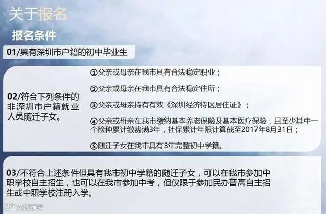 2、符合条件的非本市户籍就业人员随迁子女可以在我市报名参加中考;
