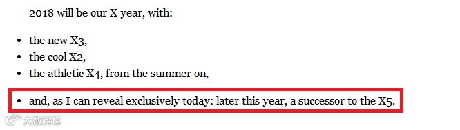 慕尼黑,5月17日,宝马全球CEO克鲁格在The 98th Annual General Meeting上正式宣布,全新一代X5将于年内发布。