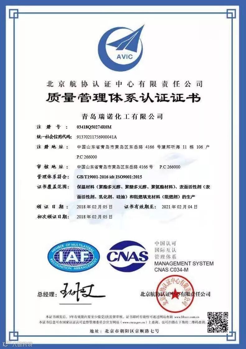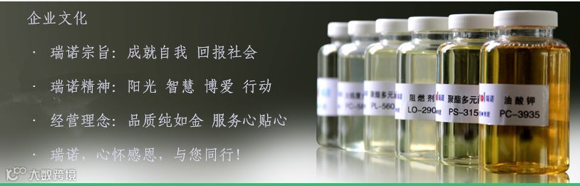 青岛瑞诺化工有限公司,致力于聚氨酯、橡胶、阻燃剂、表面活性剂领域的创新与发展,同时也专业生产和研发聚酯多元醇、阻燃剂、油酸钾、油酸钠、乳胶发泡剂、橡胶助剂、乳化剂等添加剂产品。