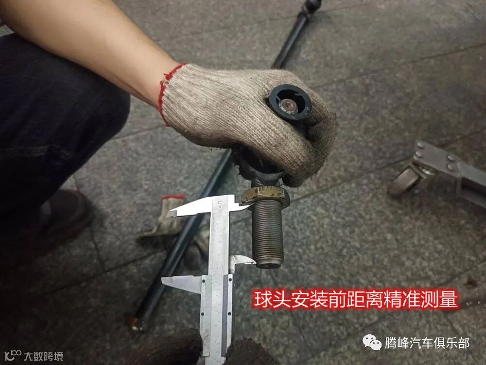 维修师傅十分的细心,更换新的球头前,用量尺进行了前后的数据精准测量,这是为了避免安装后数据不准确,产生不必要的误差。