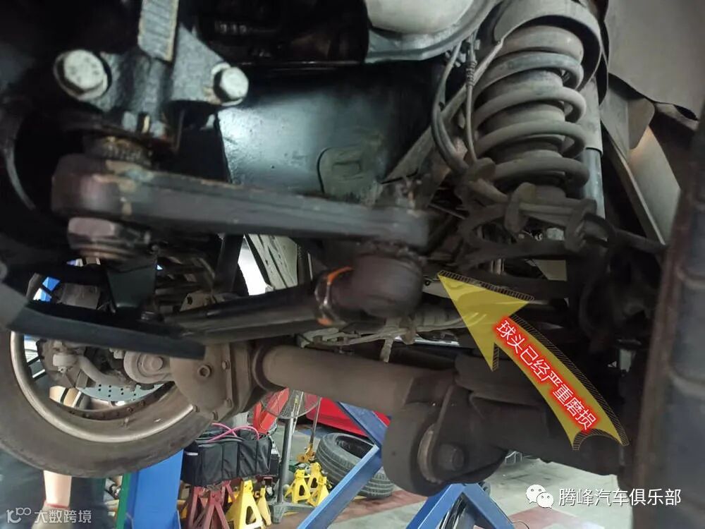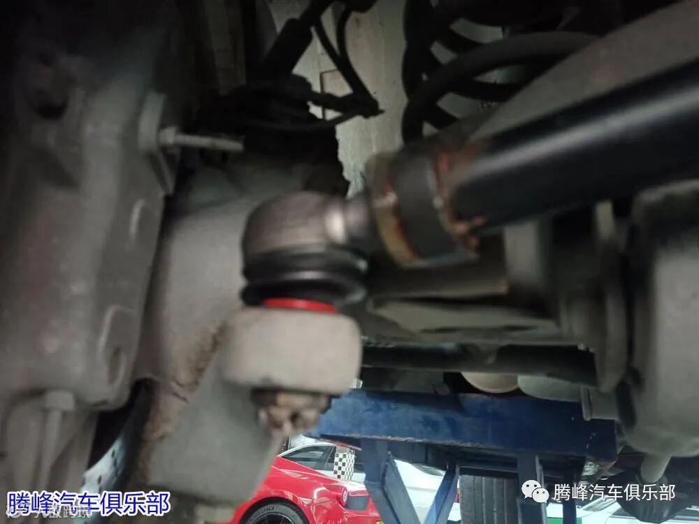 到店后,腾峰汽车俱乐部维修部的陈师傅就开始了全面的检查,经检查奔驰G500转向机拉杆球头磨损严重。