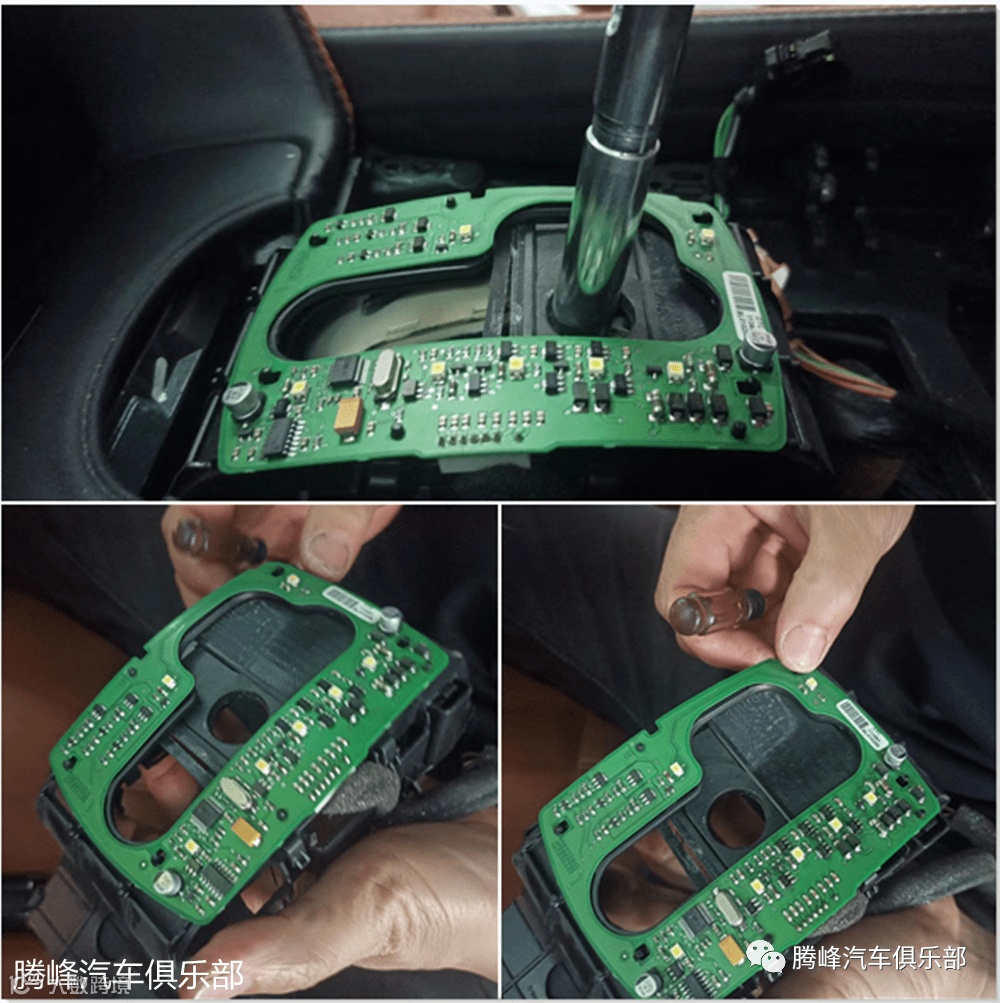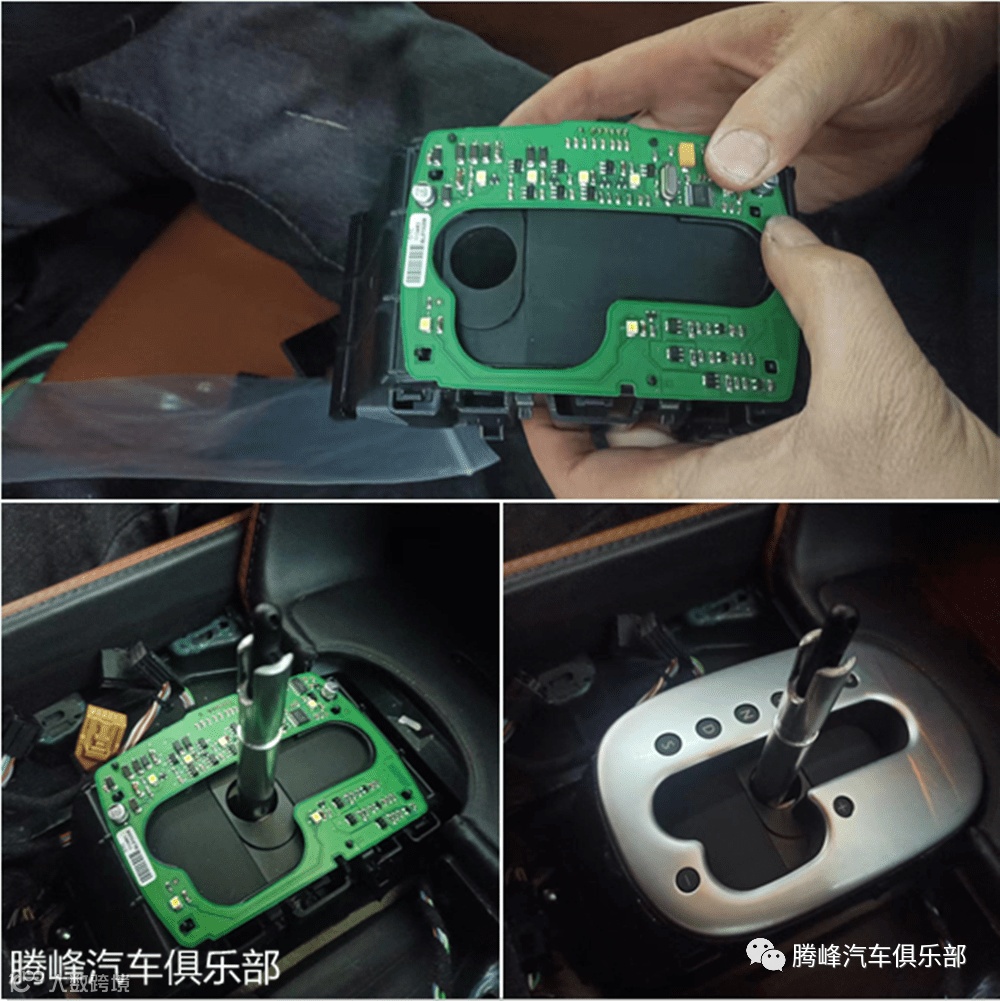 这个宾利档位处的电路板也要小心地拆卸下来,才能取出里面损坏的档位防尘板。