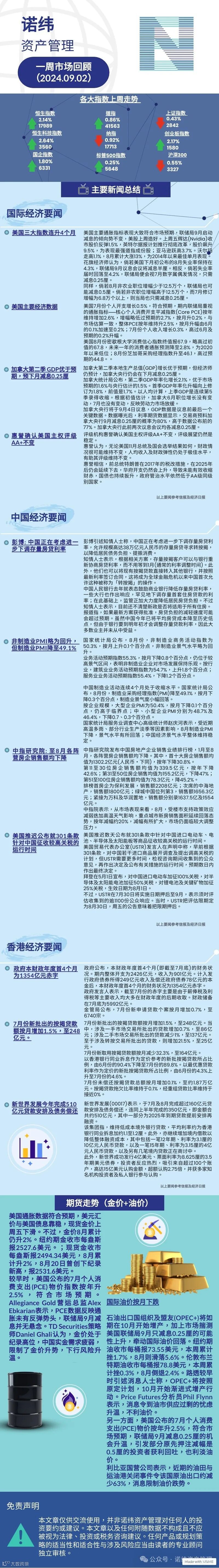 诺纬一周市场回顾 (2024.09.02) 诺纬资产管理