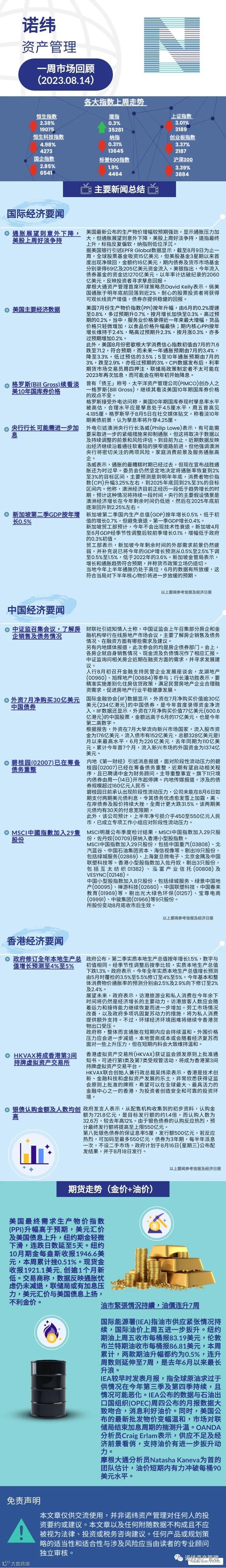 诺纬一周市场回顾(2023.08.14) 诺纬资产管理