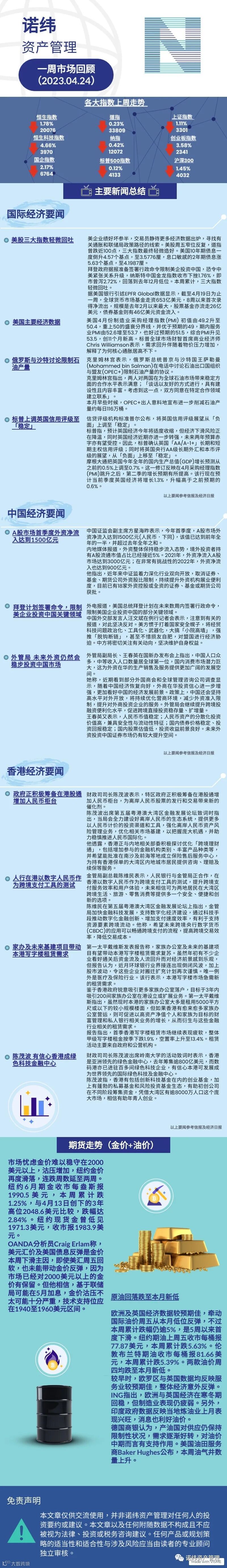 诺纬一周市场回顾(2023.04.24) 诺纬资产管理