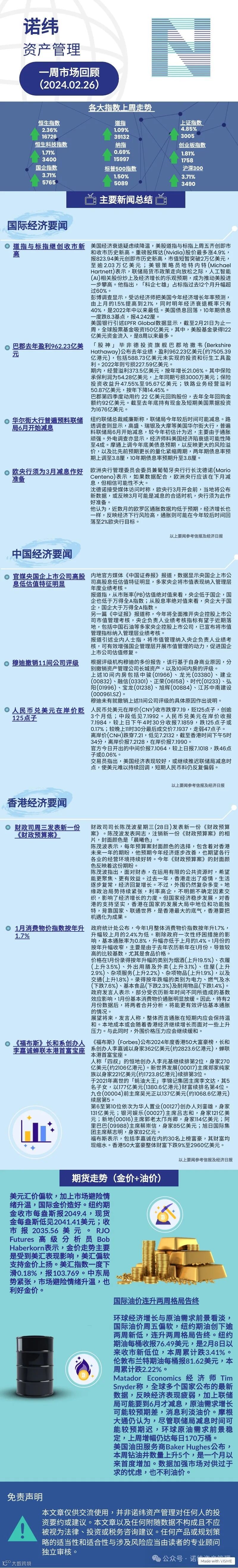 诺纬一周市场回顾(2024.02.26) 诺纬资产管理