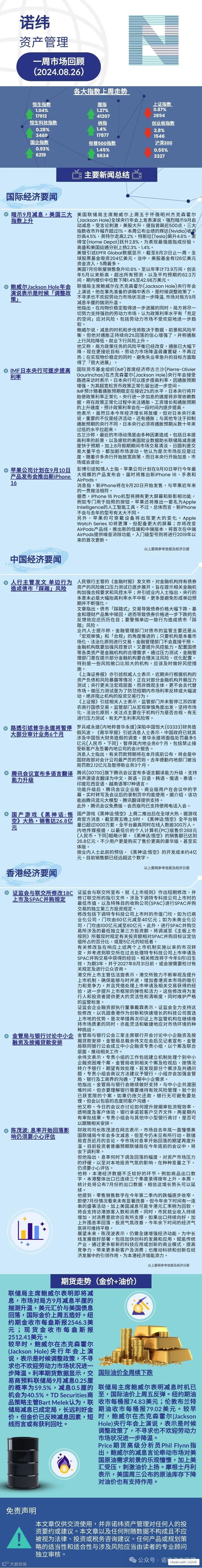 诺纬一周市场回顾 (2024.08.26) 诺纬资产管理