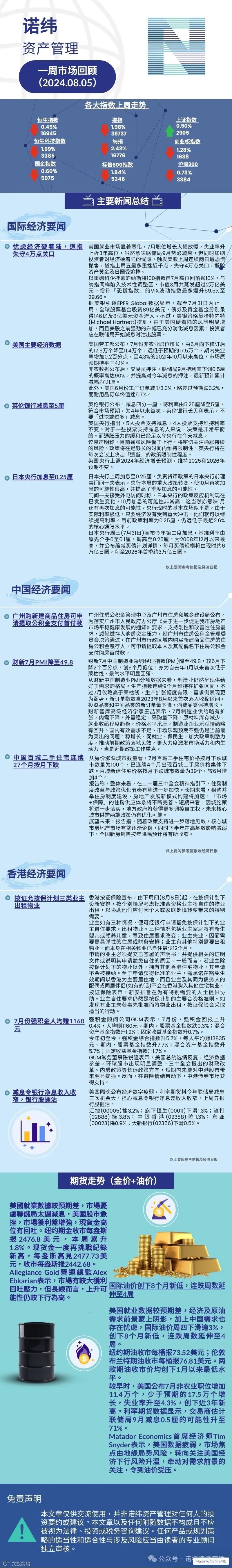 诺纬一周市场回顾 (2024.08.05) 诺纬资产管理