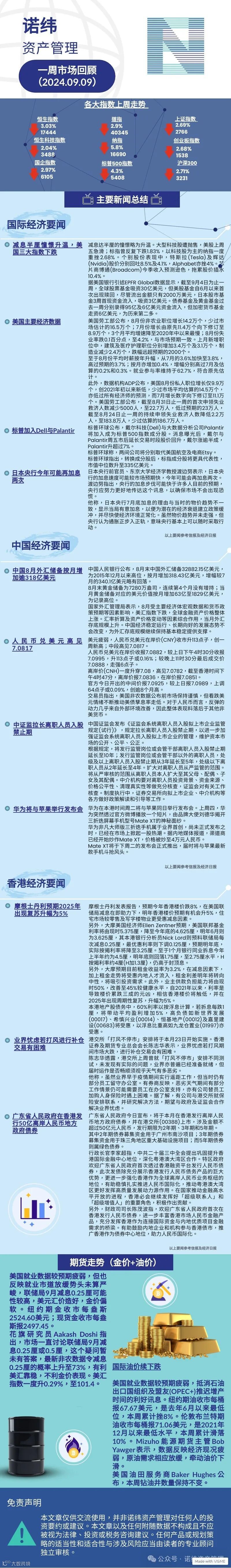 诺纬一周市场回顾 (2024.09.09) 诺纬资产管理