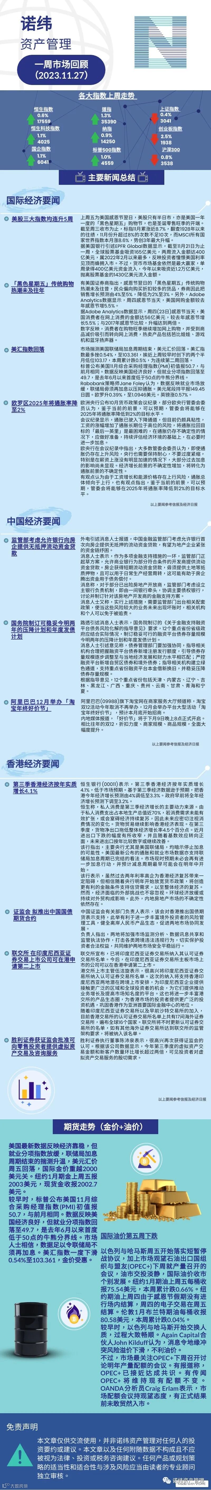 诺纬一周市场回顾(2023.11.27) 诺纬资产管理