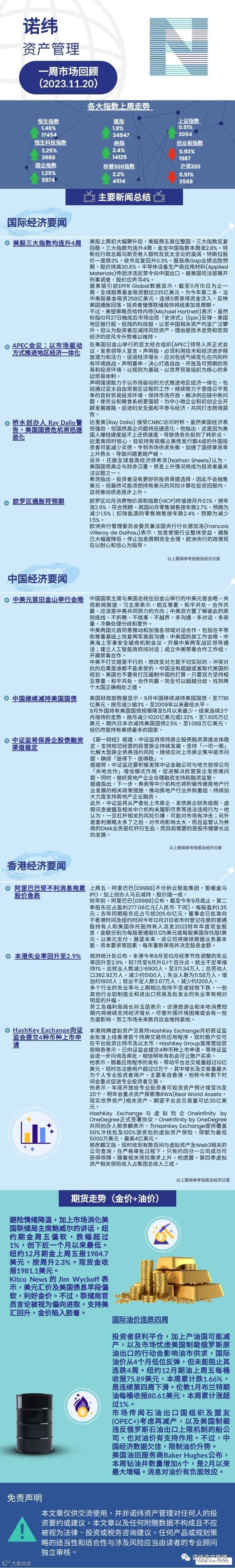 诺纬一周市场回顾(2023.11.20) 诺纬资产管理