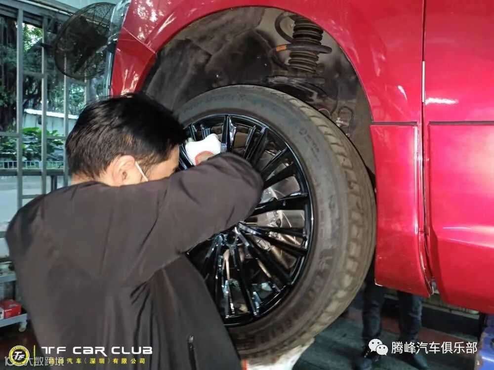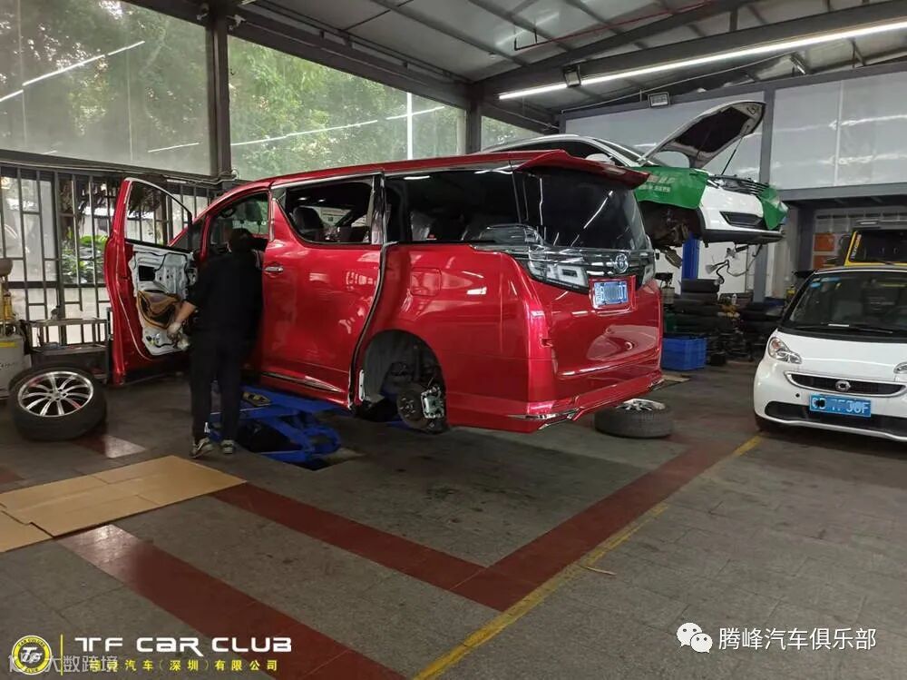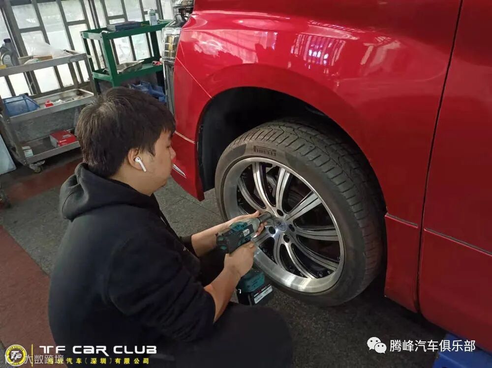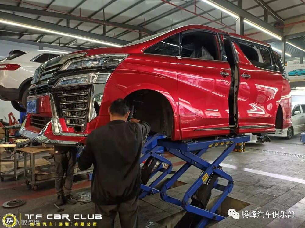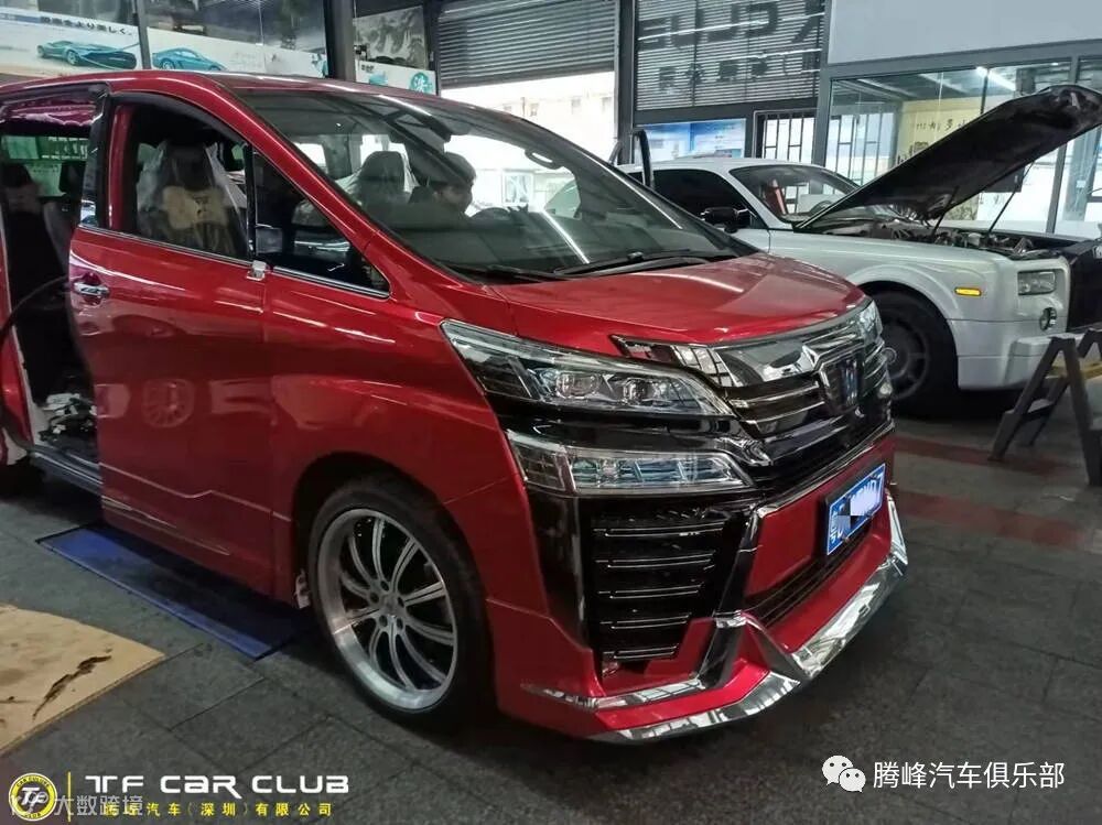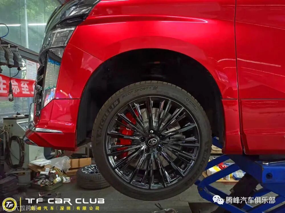 这是新款丰田威尔法商务车的外观还是很霸气,前脸很有层次感,车灯也很有科技感,侧面线条修长且厚重,很有商务范儿,内饰经过木地板改装后更加简约豪华,车主喜欢红色,所以做了全车的内外改色贴膜,金属灵动红,接下来是改装AP前六后四的刹车,并把原车的四个轮毂电镀钨钢黑。