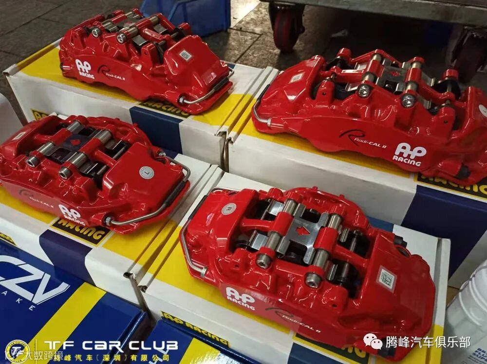AP RACING刹车套装:包含卡钳、加大碟盘、刹车片,刹车喉管、合头、桥位,刹车油,螺丝等全套配件。