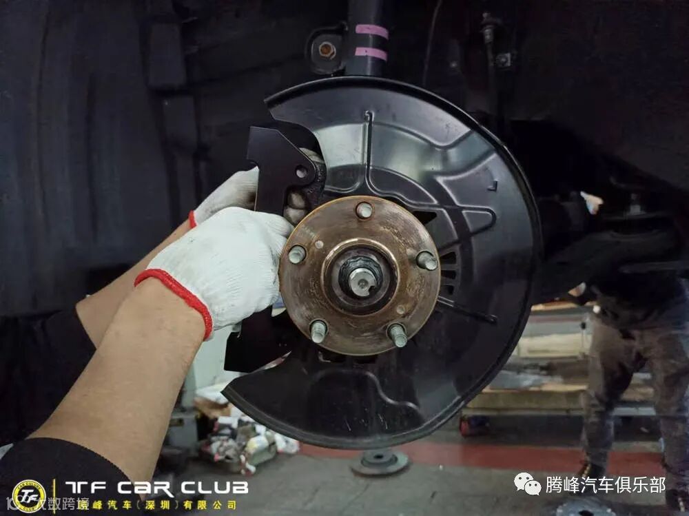 原车刹车盘,刹车卡钳等全部拆下来,之后就要开始安装新的刹车套装。