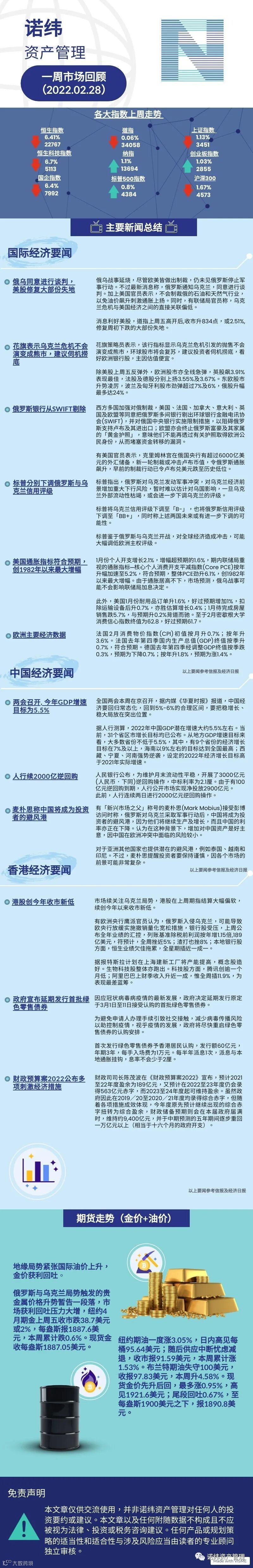 诺纬一周市场回顾(2022.02.28) 诺纬资产管理