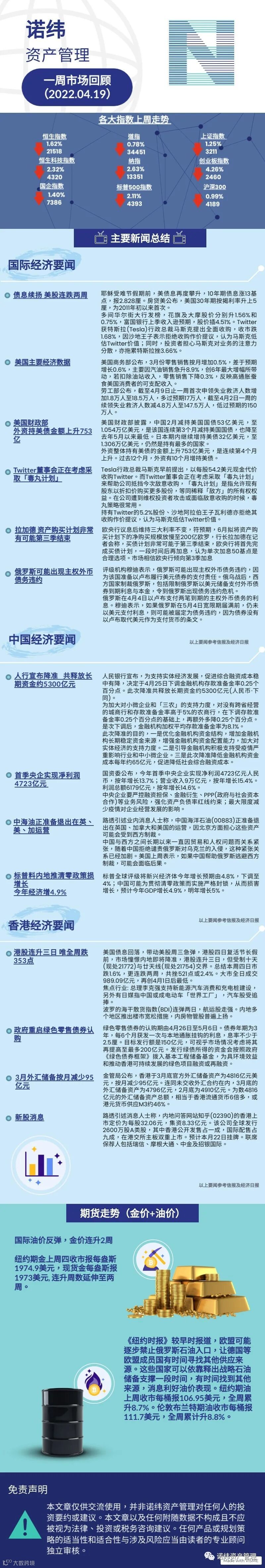 诺纬一周市场回顾(2022.04.19) 诺纬资产管理