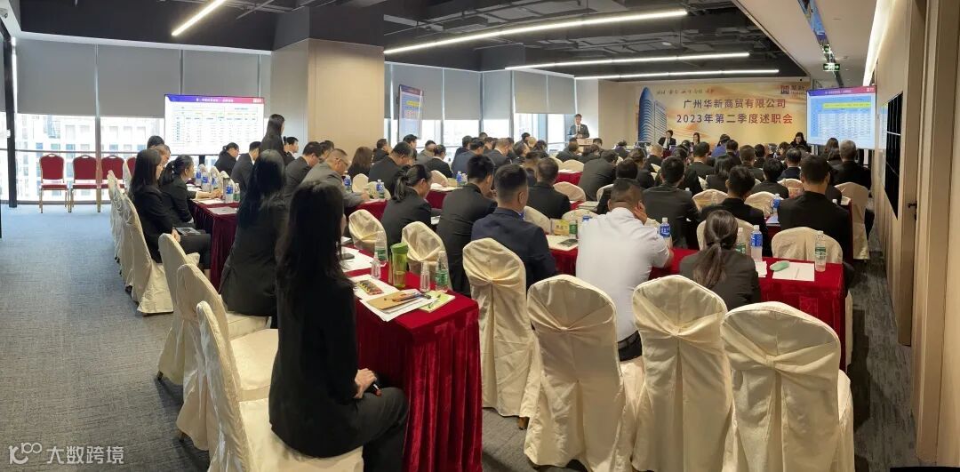 2023年7月19日,华新商贸2023年第二季度述职会在华新中心举行,各大区和部门共80余人参加。会上,各管理层分析总结第二季度经营情况,对存在问题与难点进行建言献策,共同研究解决思路,并汇报第三季度工作计划。