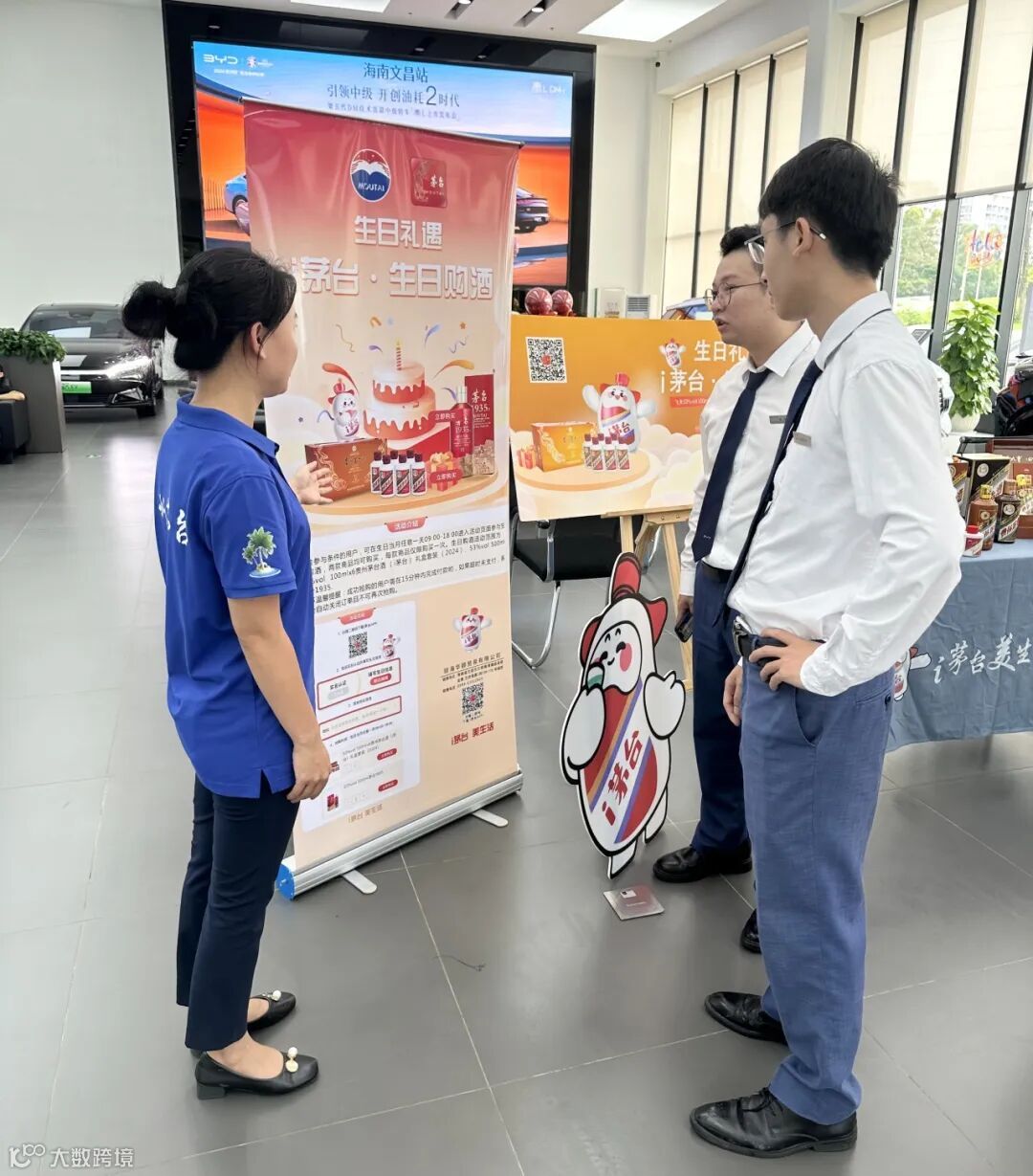 近日,琼海华颐贸易有限公司倾力打造了一场别开生面的“i茅台”APP营销地推活动,此举意在大力推广“i茅台”APP及其丰富的茅台产品,并为广大比亚迪车主提供尊贵的购酒体验。本次活动以新颖、时尚且富有活力的形式,生动展现了“i茅台”APP的创新发展及茅台文化的独特魅力,传达出数字时代人们对于美好生活的热切向往与不懈追求。