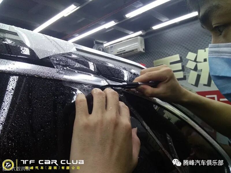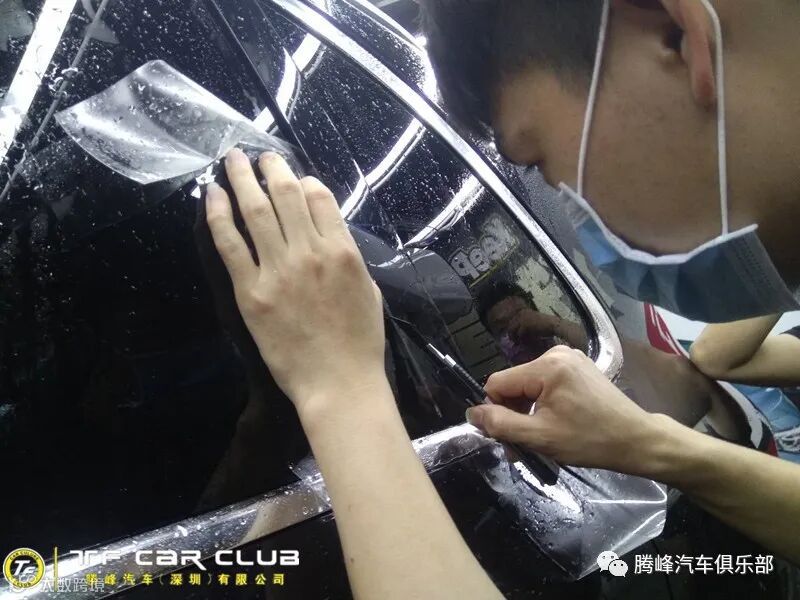 腾峰采用人工现场根据车况进行裁剪贴膜,虽然会增加施工人员的装贴工序,但效果更加完美,因为人工会根据当时的车况可做适当的延长预留,虽增加车衣的小部分浪费,但可以做到不留死角,延长的预留既可以方便调整和拉扯贴合,也可以做包边处理。这样减少了翘边的机率,提升美观度。这样可以做到真正的车漆封存。