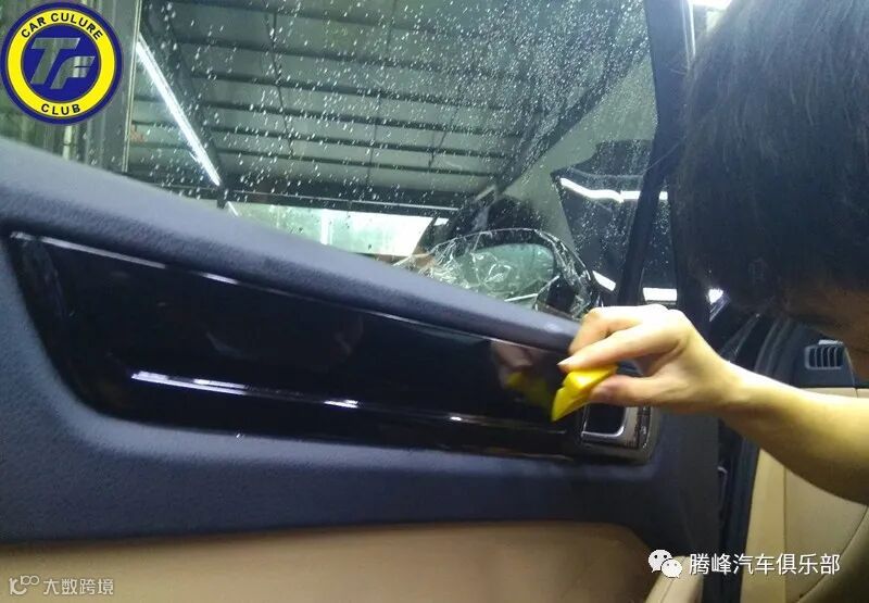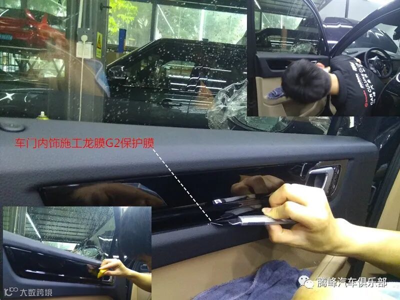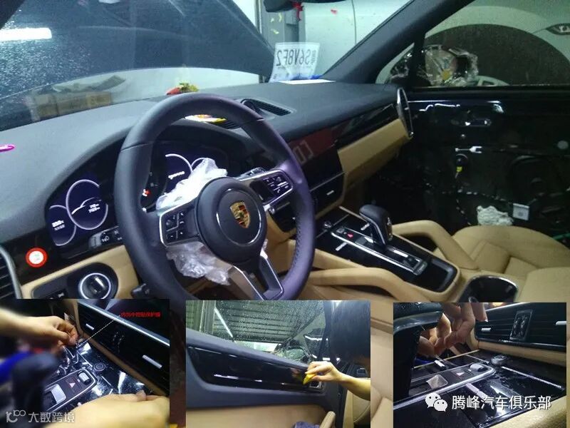 保时捷卡宴车门内饰钢琴烤漆施工龙膜G2保护膜