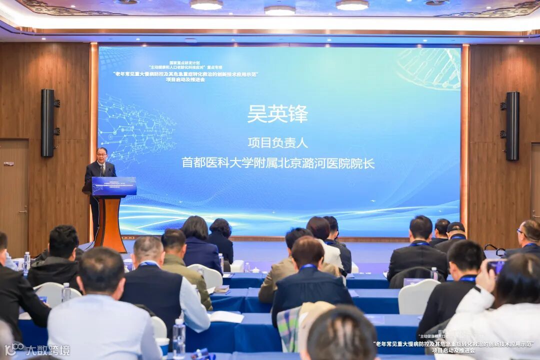 2025年11月23日,国家重点研发计划“老年常见重大慢病防控及其危急重症转化救治的创新技术应用示范”项目启动及推进会在北京市门头沟区隆重举行,北京市门头沟区人民政府副区长冯涛,中国疾控中心慢病中心主任吴静,项目首席顾问中国医学科学院北京协和医学院校长吉训明,项目负责人首都医科大学附属北京潞河医院院长吴英锋以及来自全国的170余位代表参会,共同见证这一聚焦老年健康核心痛点的示范项目正式启动。