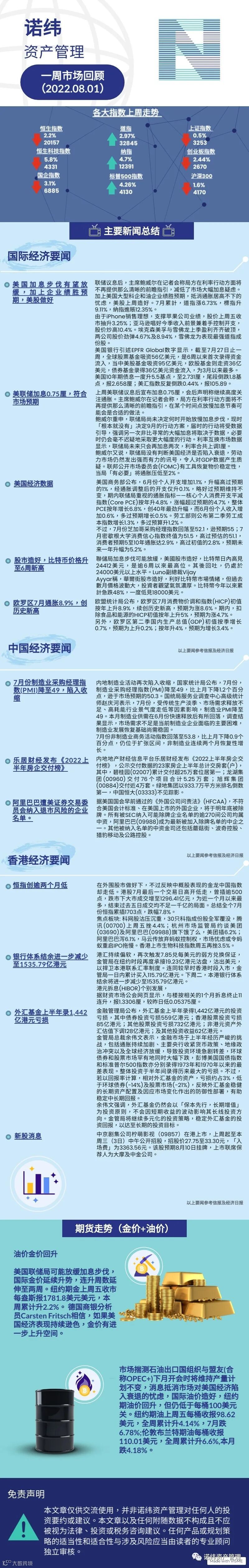 诺纬一周市场回顾(2022.08.01) 诺纬资产管理
