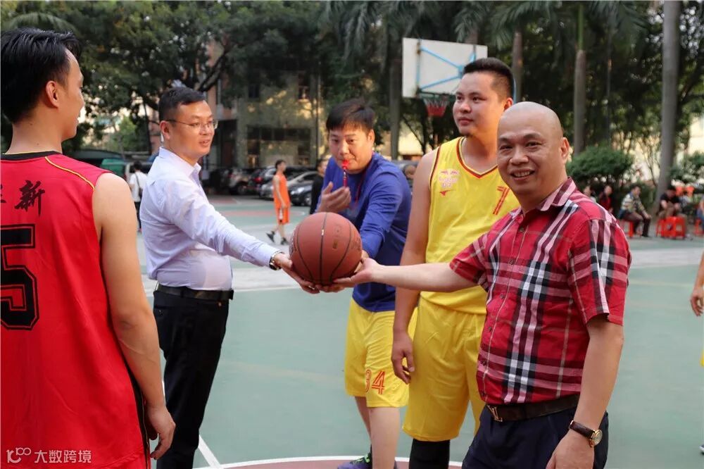华新商贸公司副总裁邓于辉先生、红牛公司总经理徐德志先生为篮球比赛开球
