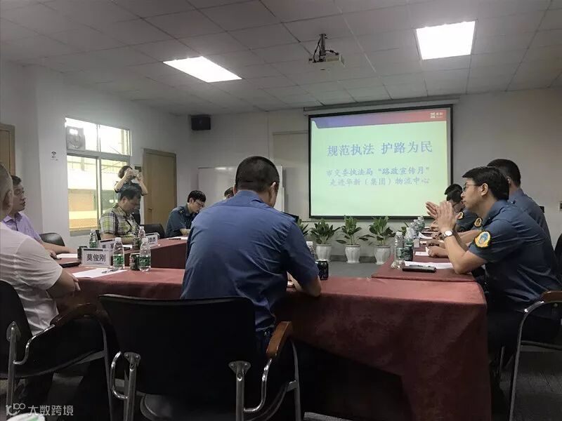 随后,我司莫俊刚总裁、蔡军副总裁及其他相关部门负责人与来访的交委领导共同围绕全国路政宣传月“规范执法,护路为民”的主题开展座谈,我司认真听取了市交委执法局就治超执法新模式的实施工作及相关的政策法规和业务流程的介绍,同时也积极反馈了我司作为物流运输业户的需求和建议。通过座谈,使我司对政策法规有了更全面清晰的了解,从而更有利于自身开展运输业务,并与同行企业一道共同营造并强化全社会的爱路护路氛围和意识。