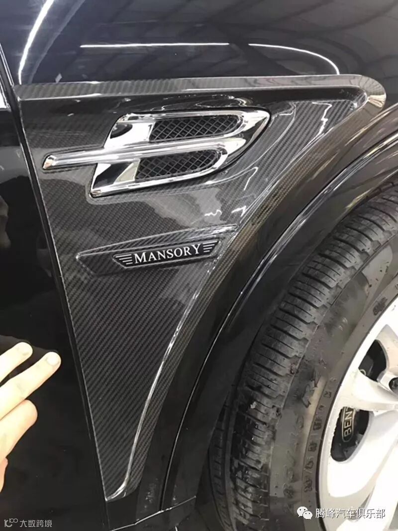 宾利添越,作为宾利旗下首款SUV车型 ;该款车的出现,满足了许多对高端奢华SUV的追求。宾利添越,在外观设计上,依旧采用宾利家族式的设计风格,非常好识别。2019春节前,腾峰汽车俱乐部改装了一台添越,车身改装mansory碳纤套件,为添越添上独特碳纤“峰味”。