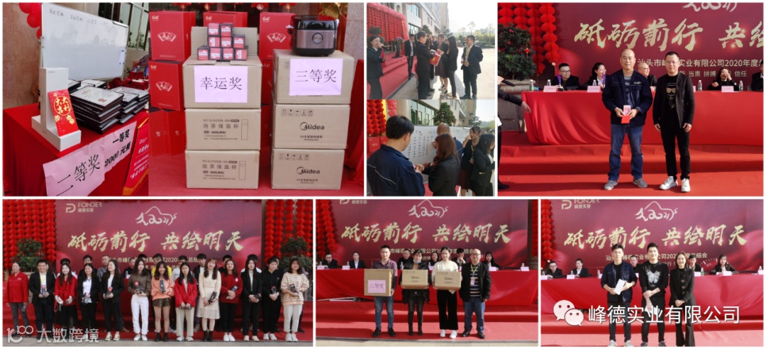 在颁奖的过程中还穿插着激动人心的抽奖环节,幸运奖:100名(奖品:保温杯),三等奖:3名(奖品:美的电饭煲),二等奖:2名(奖品:OPPO手机),特等奖:1名(奖金2000元),各部门经理、主管上台抽奖,更是把大会推向了一个又一个高潮。抽奖活动让整个会场掌声、欢笑声此起彼伏,形成一片欢乐的海洋。热闹非凡的总结大会不仅展现出峰德员工健康向上的精神风貌,而且让大家感受到了大家庭的和谐、团结与温暖。在热情激昂的气氛中,员工总结大会圆满落幕。