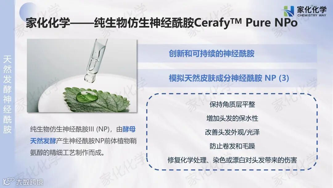 其中纯生物仿生神经酰胺Cerafy™ Pure NPo,是一款天然发酵神经酰胺,能够模拟天然皮肤成分,为头皮头发提供深层的滋养与保护,保持角质层平整,增加头发的保水性。
