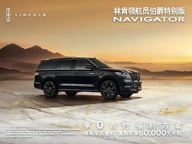 林肯航海家,陆上游艇。购车尊享至高7年整车质保,享至高24期0利率/0首付,再享30,000元购置税减免补贴,更享10,000元购车补贴及林肯车主增购/置换享10,000元补贴等多重豪礼。