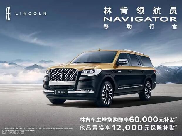 全场景中大型美式豪华SUV,林肯航海家全心礼遇,购车享24期0利率/0首付,至高14000元购置税减半,再享10000元购车补贴、他品置换6000元保险补贴、5年整车质保等多重豪礼。