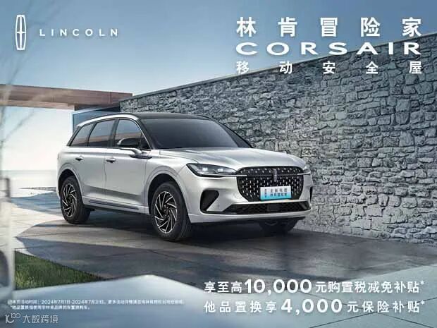 林肯冒险家,全面跃级美式豪华SUV,购享24期0利率/0首付,再享至高20000元购置税减免补贴,更有4000元他品置换保险补贴、5年整车质保等多重豪礼。