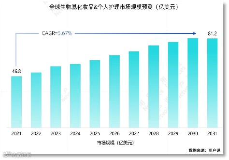 2021年-2031年全球生物基化妆品和个人护理成分市场规模以 5.67% 的复合年增长率增长,至2031年将达81.2 亿美元(约合575.0亿元人民币)。