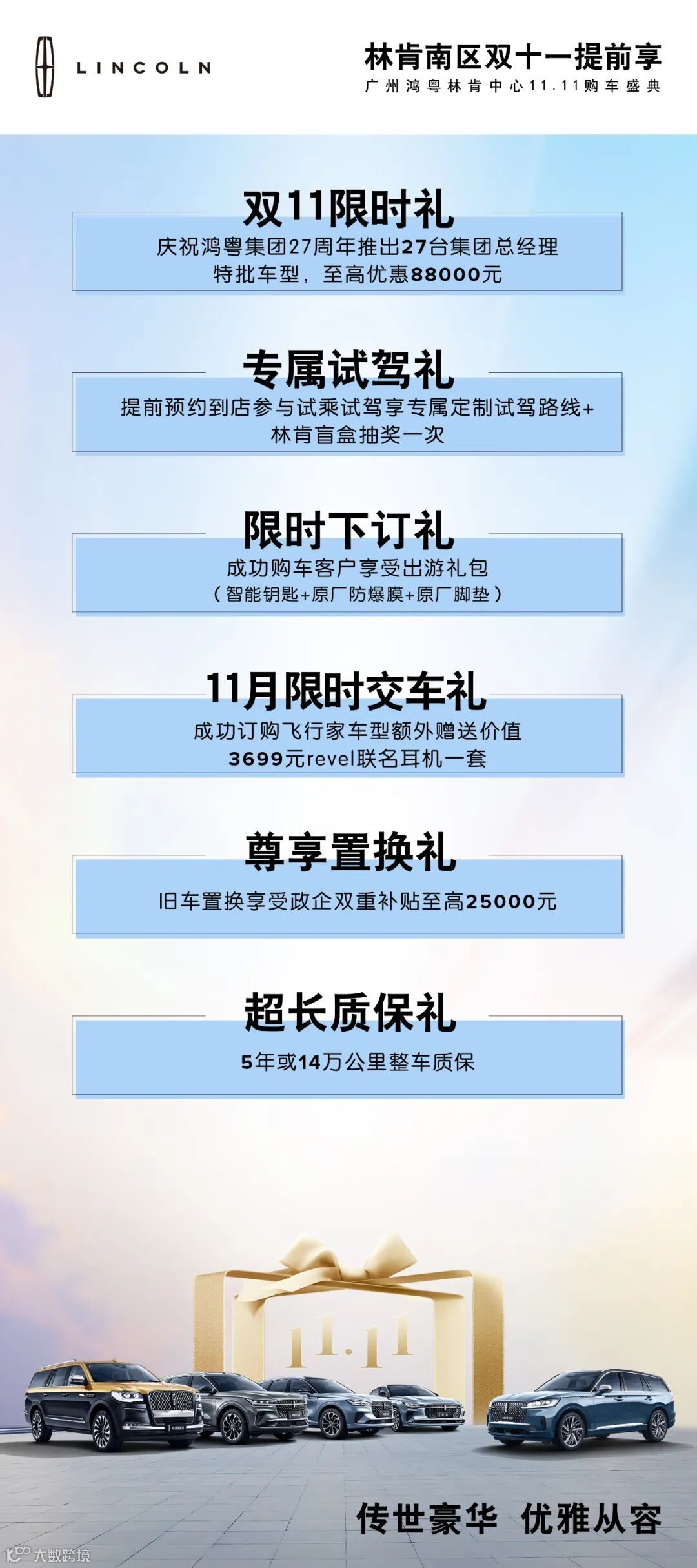林肯南区双十一提前享 2️⃣7️⃣台总经理特批车型限时抢 广东鸿粤林肯用户中心