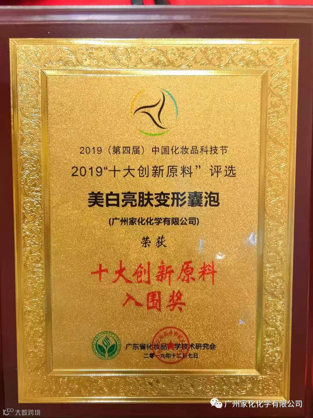 获得“2019十大创新原料入围奖”