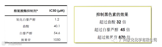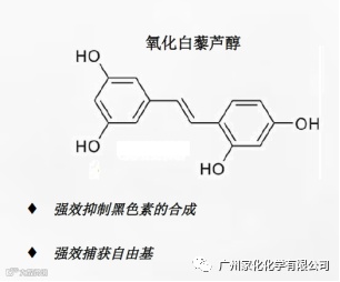 通过与市面上常见的曲酸、白藜芦醇、熊果苷三款美白原料对比进行体外测试,发现氧化白藜芦醇抑制黑色素的效果远远大于三种常见的络氨酸酶抑制剂。