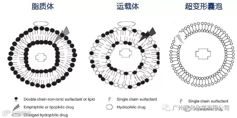 naturalis变形囊泡技术,在变形囊泡中,双分子层完全不含磷脂类,只含有单链表面活性剂,具有最大限度的 弹性/ 可变形性,因而具有最大化的 透皮能力。
