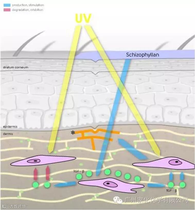 裂褶菌素刺激细胞合成TGF-β,进而促进胶原蛋白的合成。
