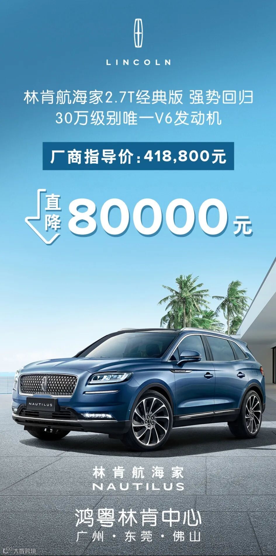 实力驾冕 跃动一夏 林肯航海家2.7T经典版 直降8万 送价值46888元礼包 广东鸿粤林肯用户中心