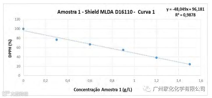 实验表明,1 kg 产品的抗自由基作用相当于9.50 g水溶性维生素E类似物(trolox)。