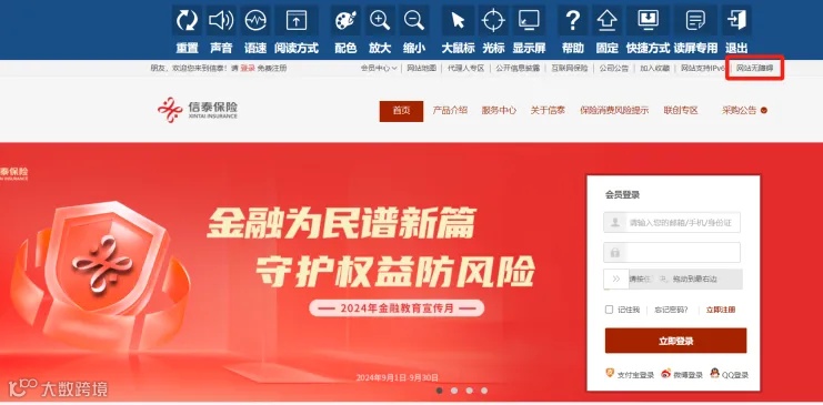 信泰保险官网设置“网站无障碍”功能,让老年客户浏览更简单