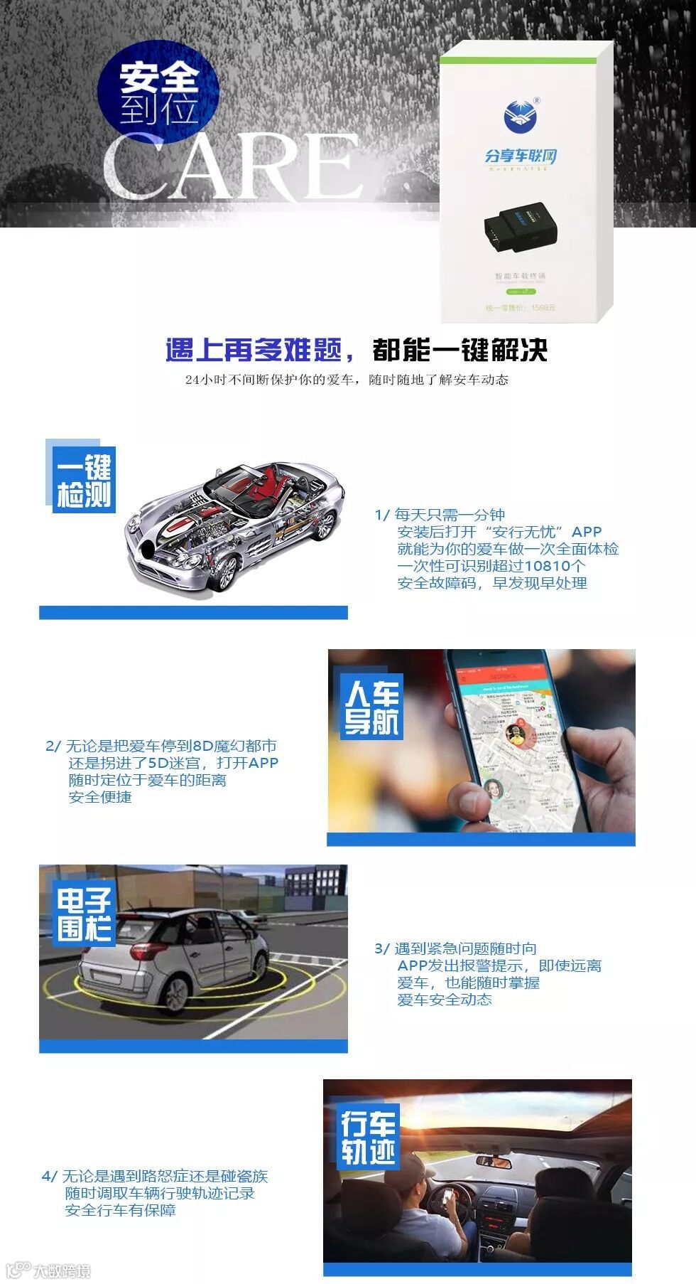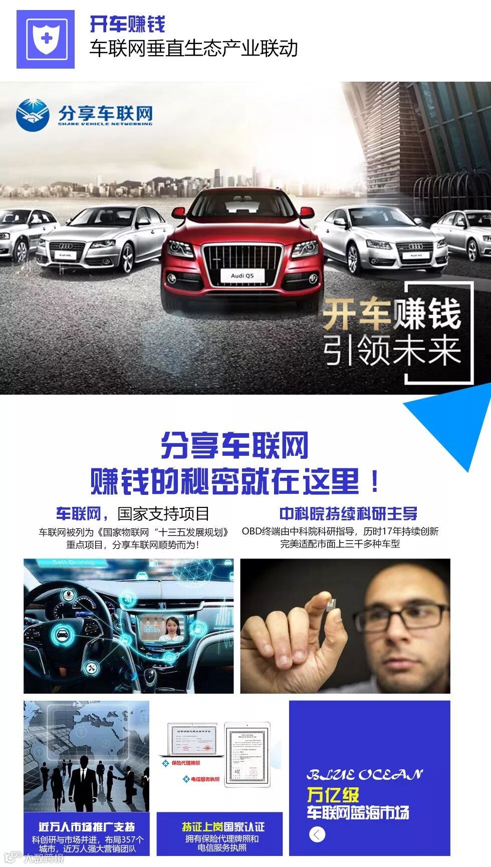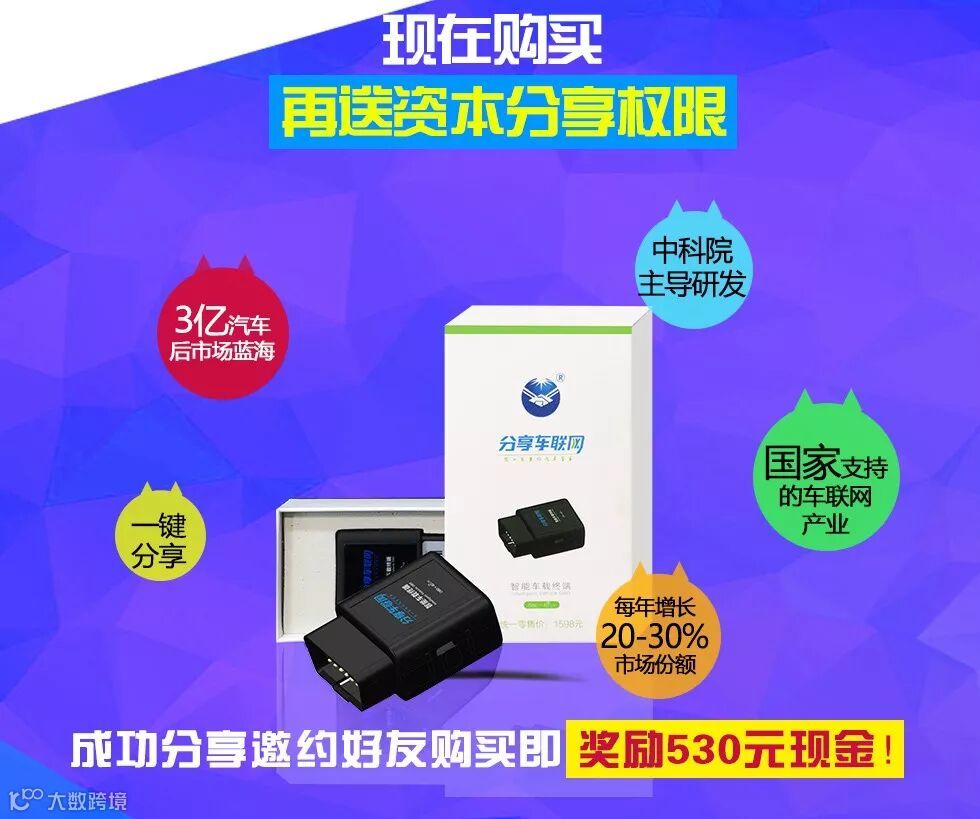 分享车联网是分享集团旗下的汽车智能服务平台,提供汽车诊断系统、车联网解决方案以及滴滴修车、滴滴救援、积分商城、违章处理、自助保险等增值服务,致力于打造一个让人、车、生活没有距离的互联网汽车生态圈。车险按天收,驾驶有积分的创新模式颠覆传统。