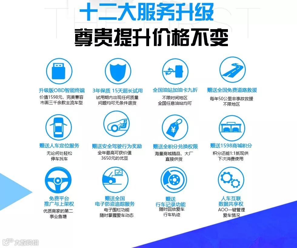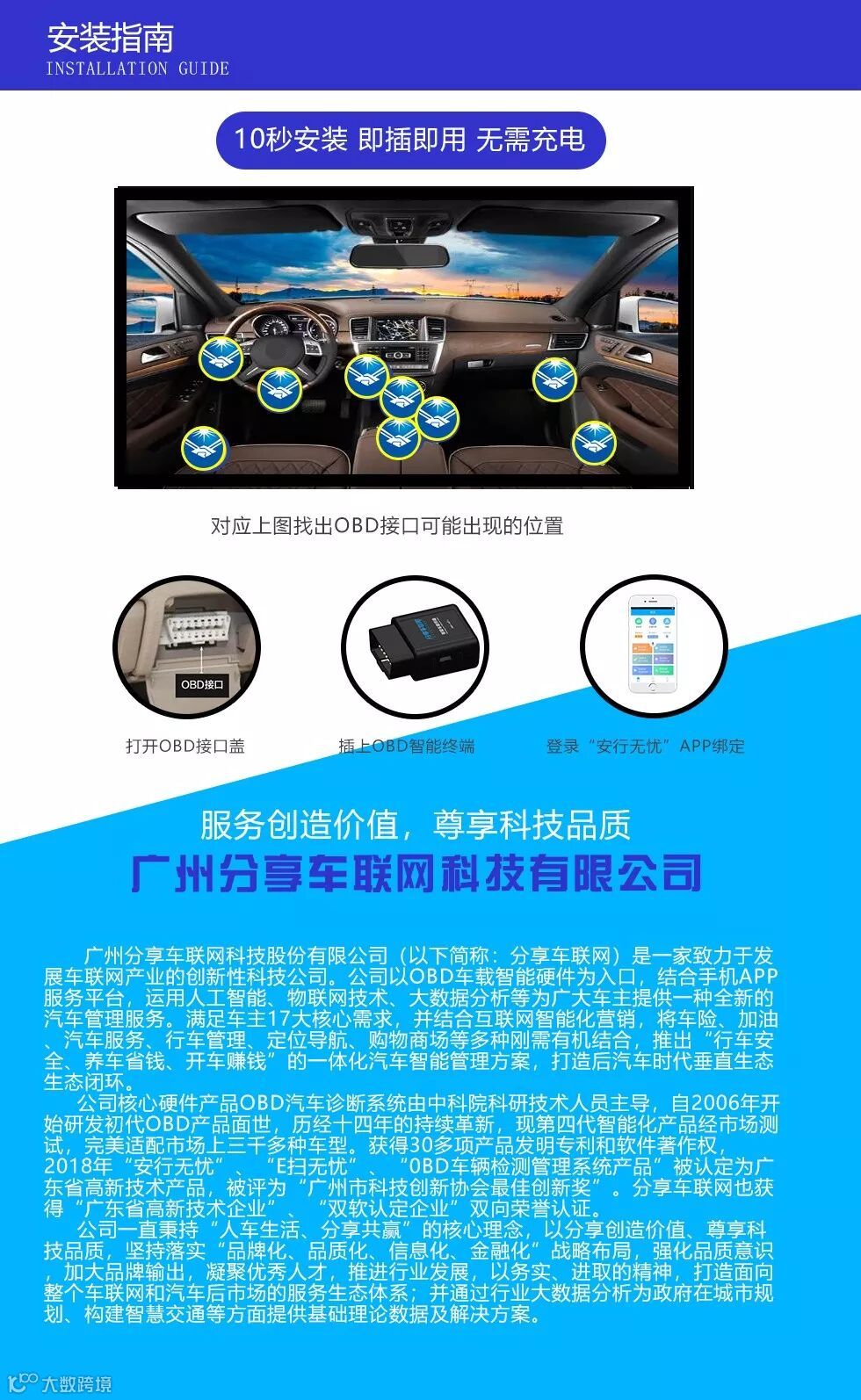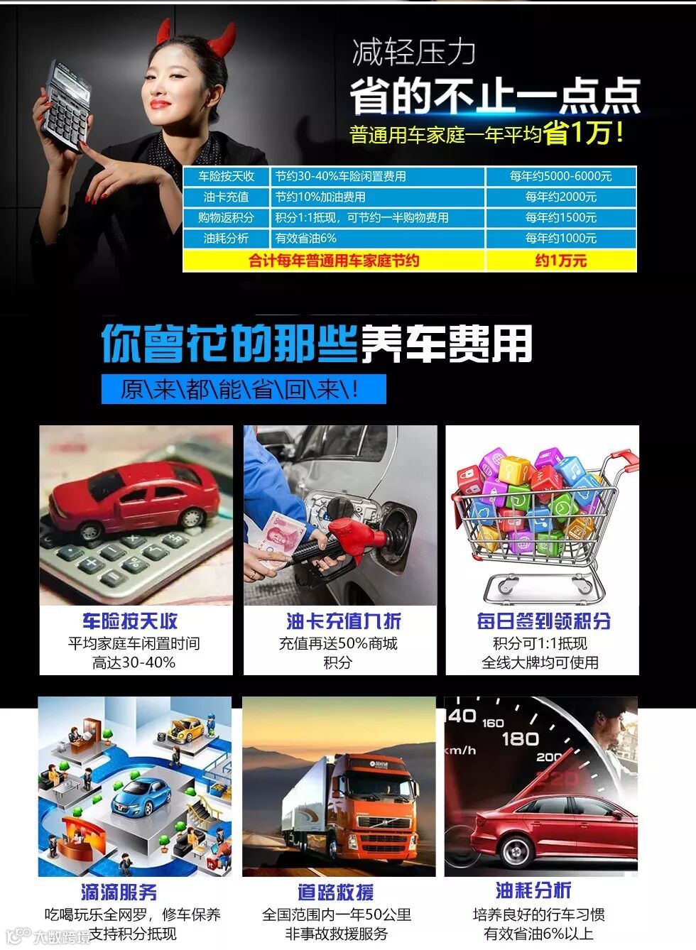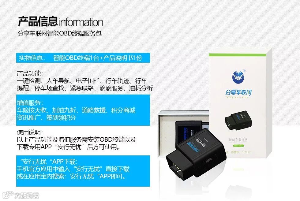 分享车联网是分享集团旗下的汽车智能服务平台,提供汽车诊断系统、车联网解决方案以及滴滴修车、滴滴救援、积分商城、违章处理、自助保险等增值服务,致力于打造一个让人、车、生活没有距离的互联网汽车生态圈。车险按天收,驾驶有积分的创新模式颠覆传统。