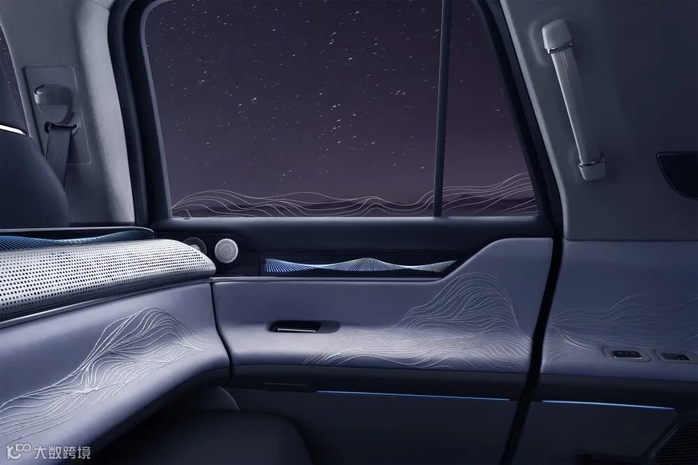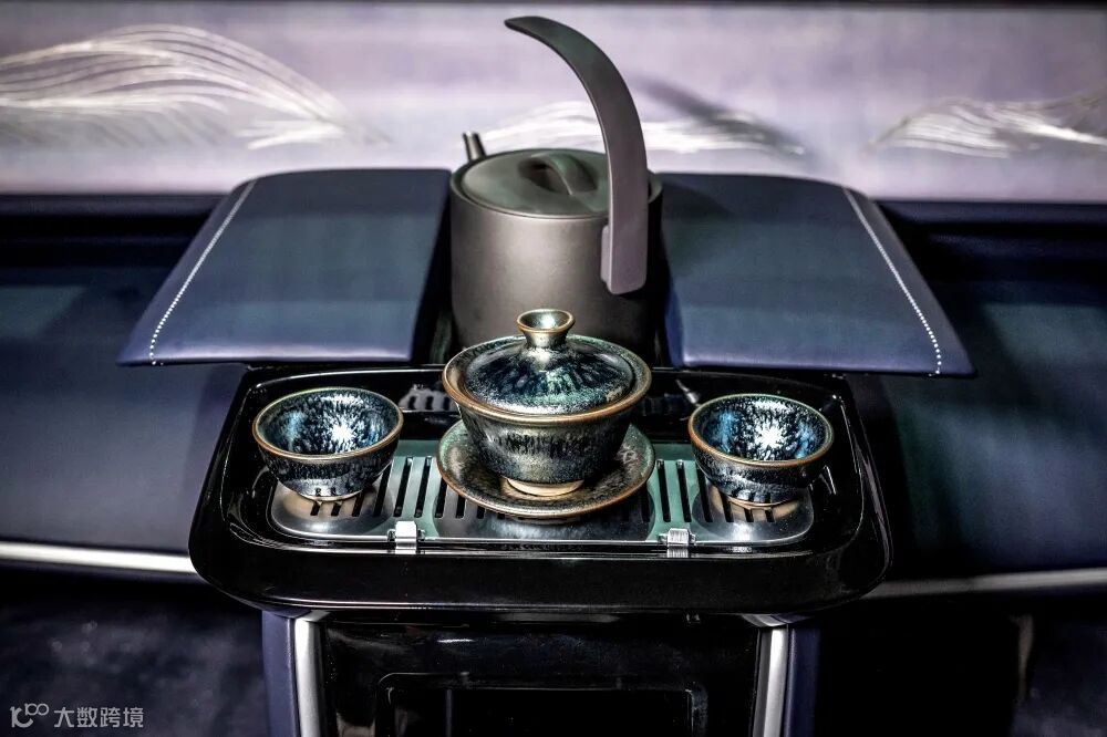 值得一提的是,领航员壹号的座舱空间采用“天圆地方”的设计理念,与山水光影律动天窗相呼应,象征高山流水,富贵将达。专属节奏音浪Soundbar后排音响融入参数化设计,将自然与人文之音有机融合,形神具备,气韵合一。此外,车内还配备有一体式中岛升降茶吧,一席一私享,承载中国传统文化中“出行有礼”的至高待客之道,礼乐之道,一路随行。