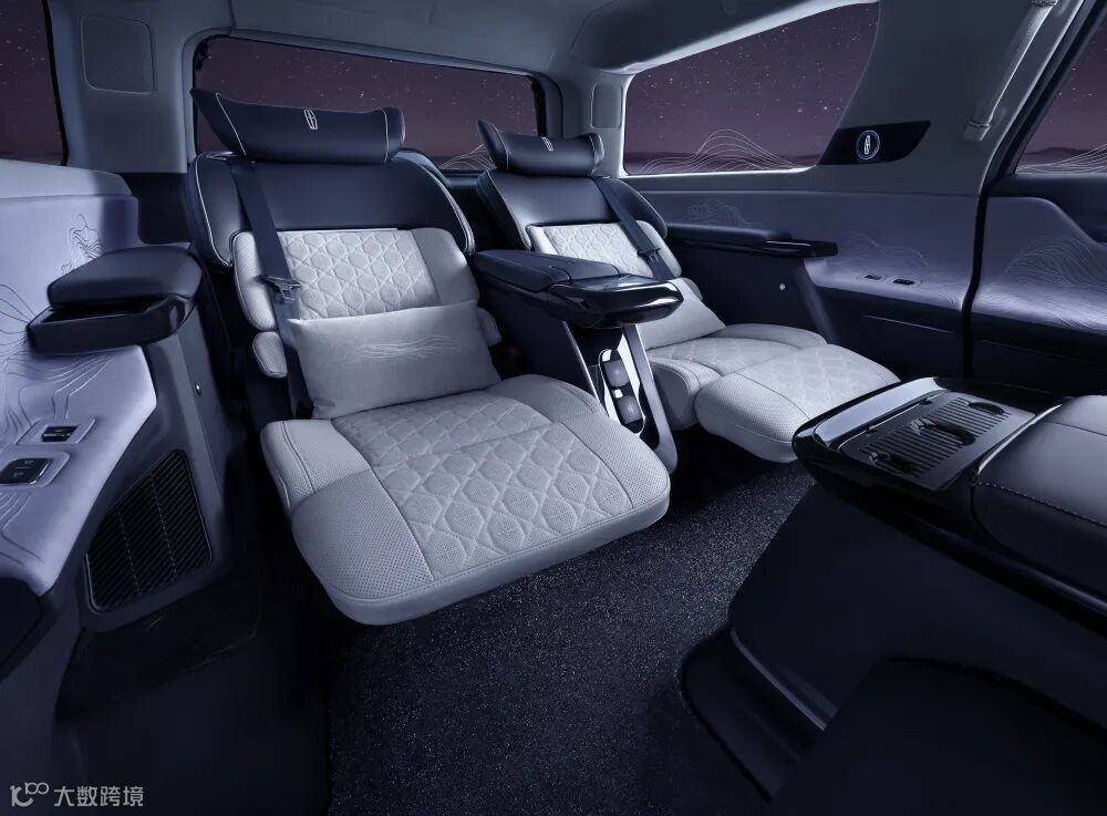 一方一隅,私享随心。座舱内的4种沉浸式私享场景模式,可根据车主的个性化需求随心调节,覆盖迎宾、休闲、娱乐、商务全场景,真正“懂您所需”,将美好呈至眼前。位于后排座舱的智能电视支持无线投屏功能,无论是商务会议或影音娱乐,都能随时随地开启,不受场地之约束,尽享尊贵私享空间。浩瀚星河,内蕴自显。座舱内采用高级天鹅绒星光地毯、至臻高级麂皮星海式律动星光顶与星河式透光呼吸饰条遥相呼应,满眼星辉璀璨,伸手即可摘星。