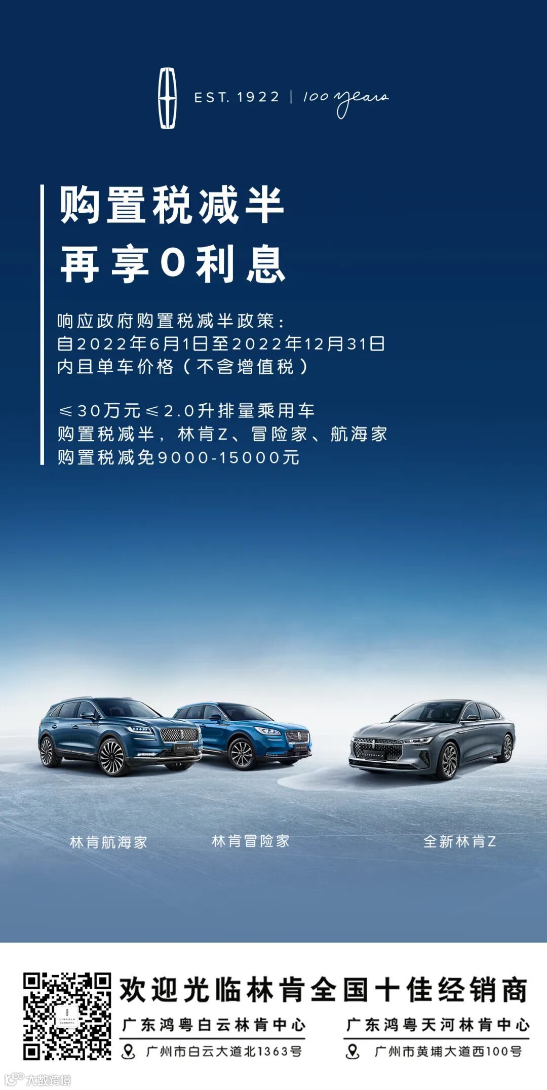 【广东鸿粤林肯】购置税减半再享0利息 广东鸿粤林肯用户中心